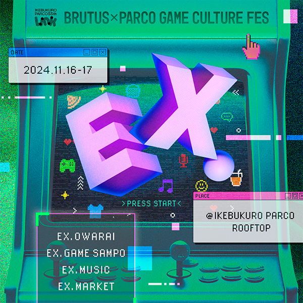 「EX.」BRUTUS×PARCO GAME CULTURE FES ポップカルチャー/ライフスタイルの総合誌「BRUTUS」とパルコがタッグを組み、『ゲーム×カルチャー』をテーマにした、ゲームの多様な楽しみ方を提案する新たな形のフェスを開催!