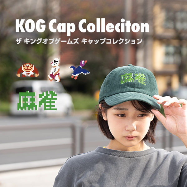 ファミコンのドットキャラをクロスステッチであしらったキャップ「KOG CAP COLLECTION」が新登場! 『ピンボール』『エキサイトバイク』『ドンキーコングJR.』『アイスクライマー』『ダックハント』『麻雀』をモチーフに、ファミコン世代の方には懐かしく、ファミコンを知らない世代の方にも普段のコーディネートに取り入れてもらえるようなアイテムを目指して作りました。