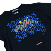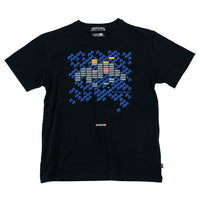 ゲーム画面をイメージしたデザインですが、プリントは金属をイメージさせるメタリックなプリントを施し存在感のある一枚になっています。