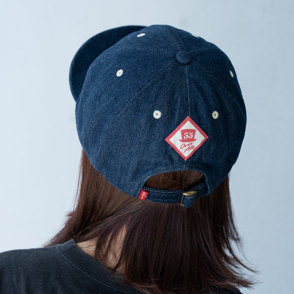 デニム生地を使用した、エディットモードのオリジナルキャップ。