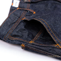 濃紺インディゴデニムにオレンジのステッチが特徴の『ワンウォッシュ』モデル。