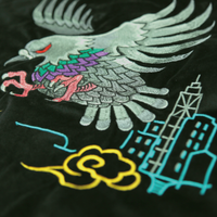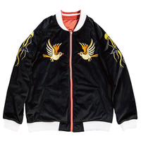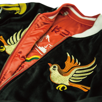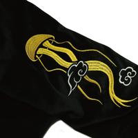 胸に「雀」背中は「鳩」、袖には「海月」の刺繍デザイン。