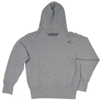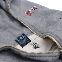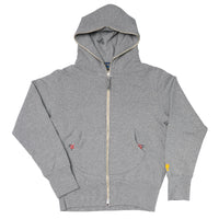 左右のポケット口にお馴染みのモトクロッサーのクロスステッチ、そしてバックプリント、それからフードの中まで…控えめなプリントと細かいクロスステッチがアクセントになった大人のフルジップパーカーです。
