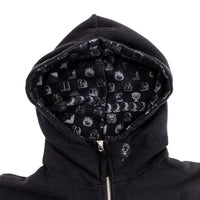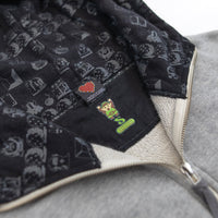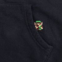 ポケット口にはリンク、バックにはハートの器のクロスステッチ、フードの中には敵キャラクターの連続柄を密かにプリント。