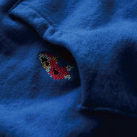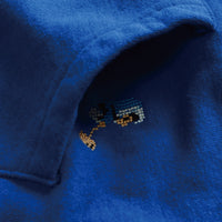 ポケット口の左右にポポとナナをクロスステッチで配置し、バックにはシロクマ、フードの表にコンドル、