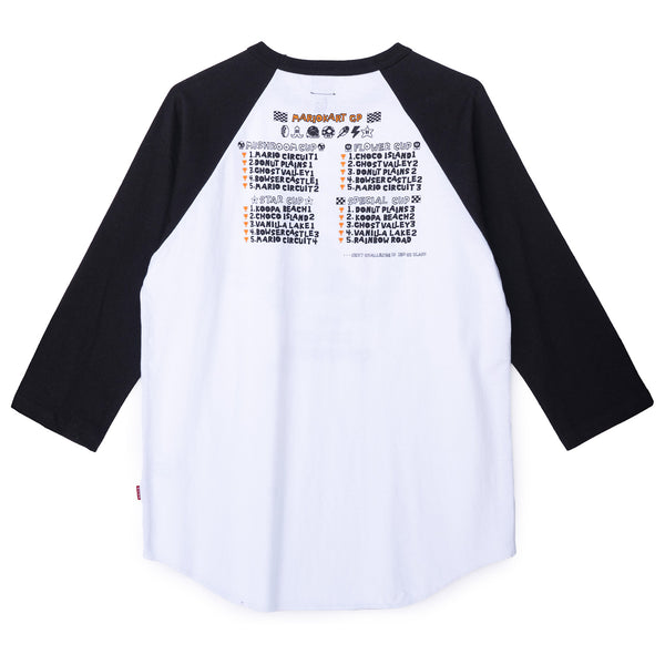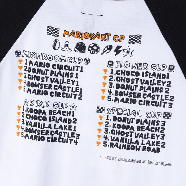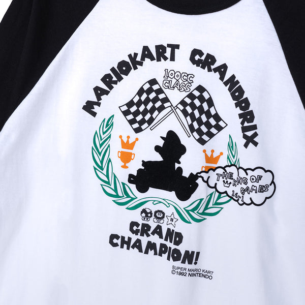 スーパーファミコンソフト『スーパーマリオカート』をモチーフにしたラグランシャツ。