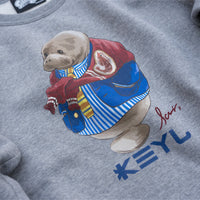 末長く着ていただけるよう生地・縫製・プリントにいたるまですべて国産にこだわって作ったスウェットです。ゲーム内のイメージを忠実に再現しつつ、イカ世界のアイテムをヒトが着用しても違和感なく身につけられるように、プリントの大きさや位置など細かい微調整を繰り返して制作しています。