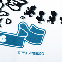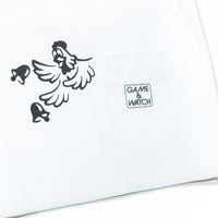 『GAME & WATCH』の液晶のイメージをフロッキープリントと染み込みプリントを使用しゲームのイメージとアメカジテイストを合わせたデザインになっております。