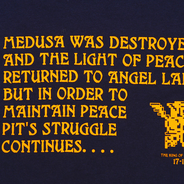 1986年ディスクシステムで発売されたアクションゲーム「パルテナの鏡」をモチーフに、主人公ピット君が集める「三種の神器」をカレッジTシャツ風にデザインしました!ボディカラーはネイビーとホワイトの全2色展開。