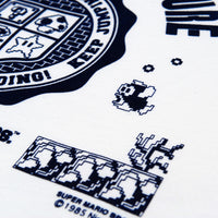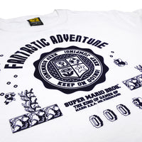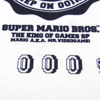 ファミコン時代にリリースされたマリオタイトル4作品を、それぞれカレッジTシャツモチーフを下敷きに各タイトルの代表的なアイテムやシーンを配置しフロッキープリントで仕上げております。お好みの配色や思い出のタイトルを選んで下さい。