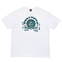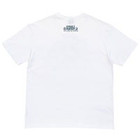 カレッジTシャツモチーフを下敷きに代表的なアイテムやシーンを配置しフロッキープリントで仕上げております。