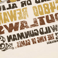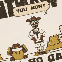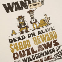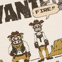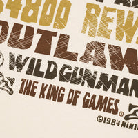 1984年に発売されたビデオシューティングゲームシリーズ第一弾「ワイルドガンマン」をモチーフに、指名手配書をイメージしたデザインでTシャツ化しました。