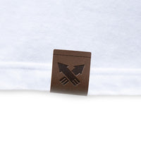 裾のピスネームは合皮素材にバトロイカロゴを焼印した豪華仕様。